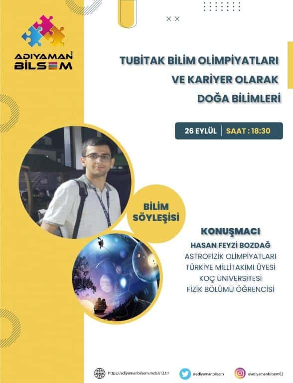 Adıyaman Bilim ve Sanat Merkezi olarak öğrencilerimizi bilimsel düşünceye teşvik etmek ve onları kariyer yolculuklarında desteklemek amacıyla yeni bir bilim söyleşisi düzenliyoruz.